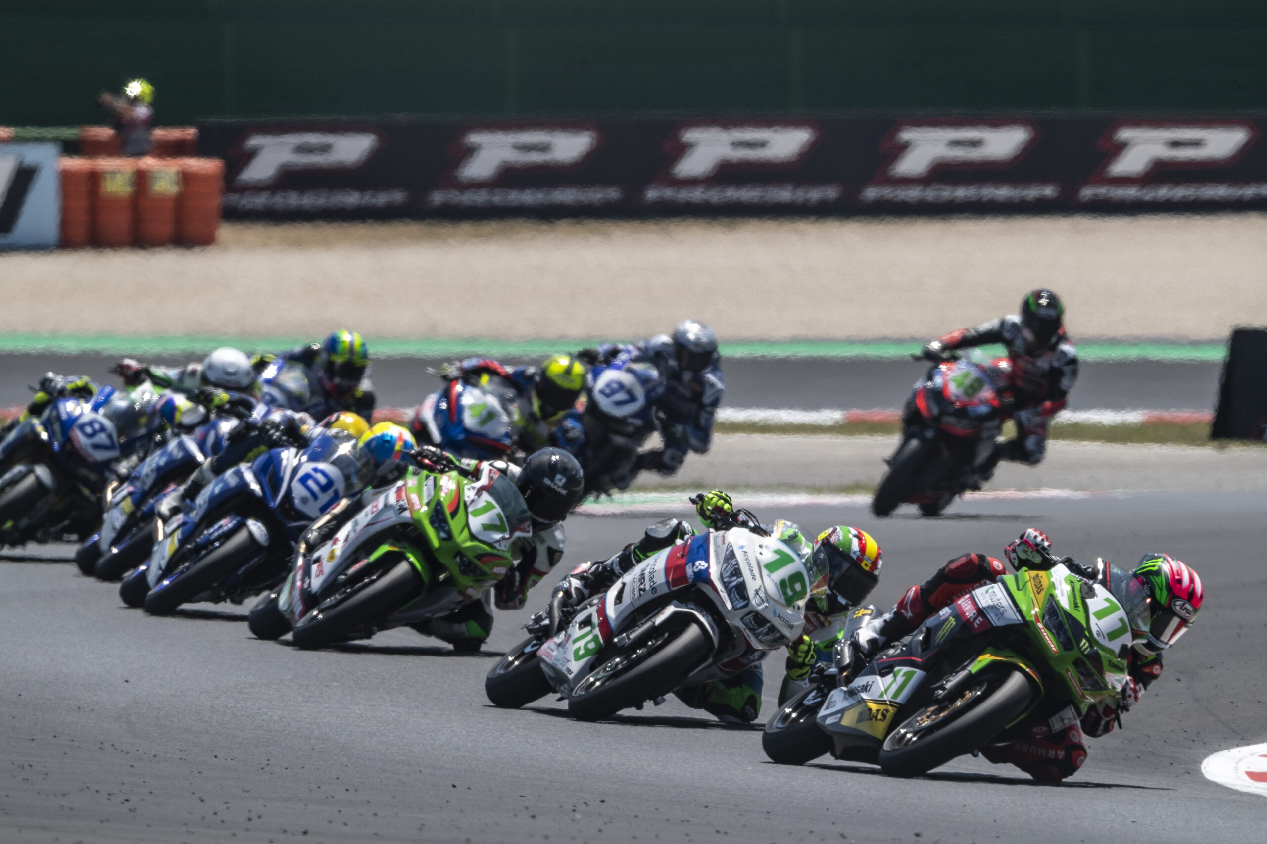 En la segunda carrera de Misano celebrada esta tarde Ana ha salido desde la 5ª fila de parrilla y rápidamente se ha colocado en la 6ª posición, durante gran parte de la carrera se ha estado moviendo en esta posición y la 9ª en un extenso grupo de cabeza.
