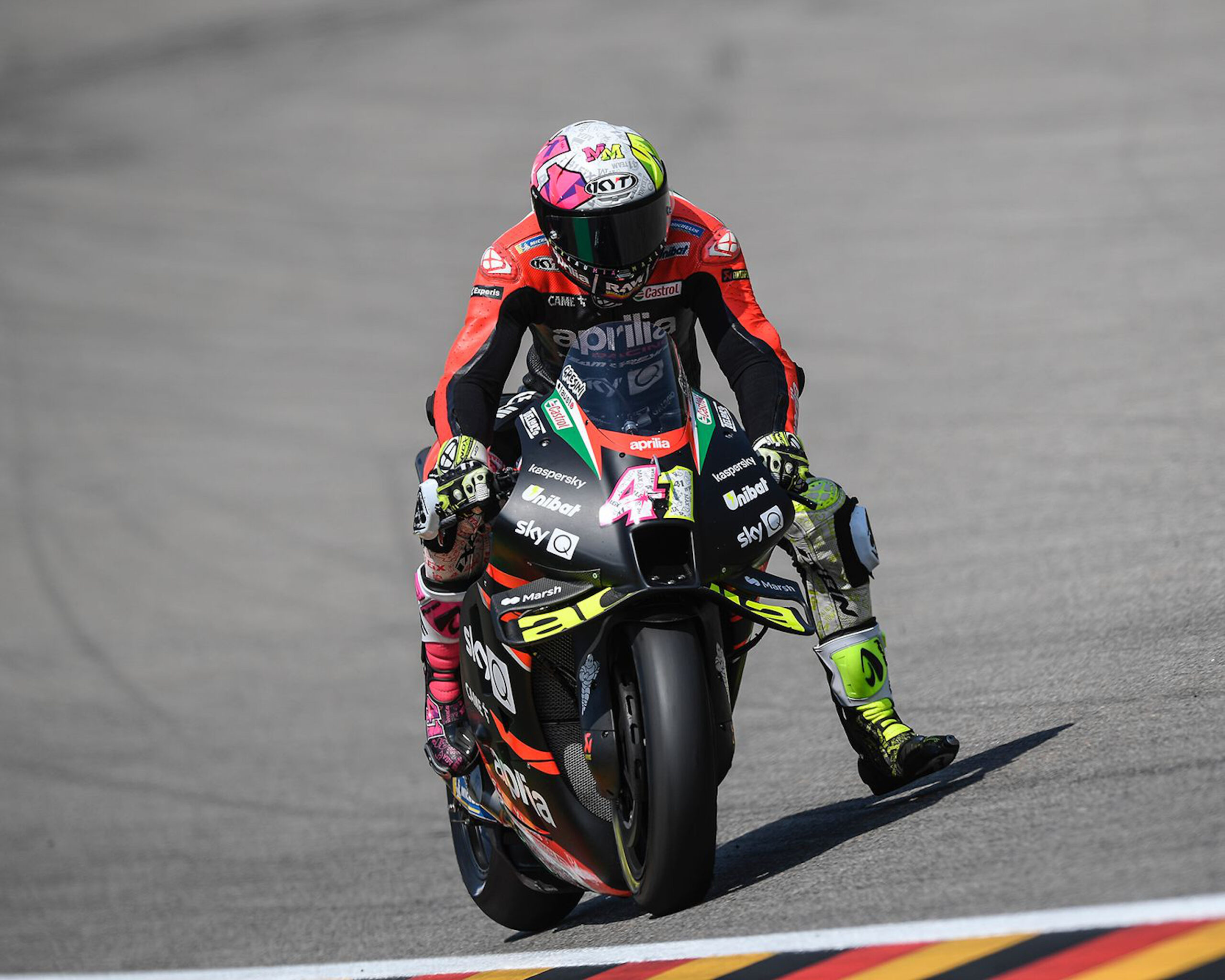 En este sábado extremadamente caluroso en Sachsenring, Aleix ocupó el tercer lugar en la parrilla de salida del GP de Alemania. Este es el mejor resultado de Aprilia en la categoría reina: hasta ahora, la moto italiana nunca había salido de la primera fila en la era de las motos de 4 tiempos de MotoGP.