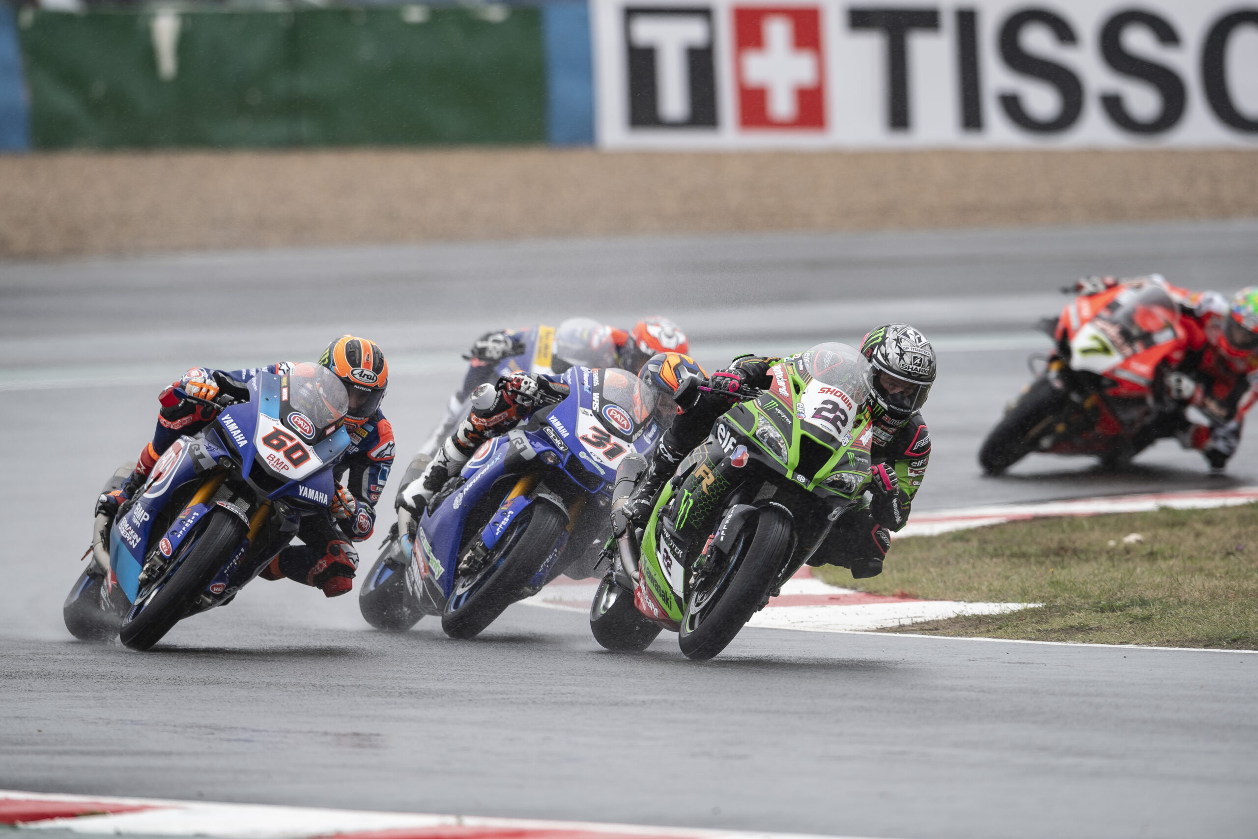 Con la pista completamente mojada, la primera carrera de 21 vueltas del fin de semana del Mundial de WorldSBK en el sur en Francia, vio a Jonathan liderar casi inmediatamente, después de que los pilotos en primera y segunda posición de la línea de salida se tocaran y cayeran en la primera curva. Rea sacó el máximo provecho de una buena salida y de una pista despejada para aumentar su ritmo en el circuito de Magny Cours. Pasando bajo la bandera de cuadros a 3.342 segundos del segundo clasificado.